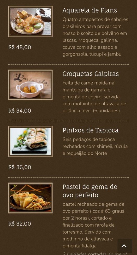 Localizado no bairro do jardins, o restaurante Micaela, de especialidade brasileira, é simples, com localização discreta na esquina e com um salão pequeno, mas detém de uma excelente gastronomia com pratos saborosos.