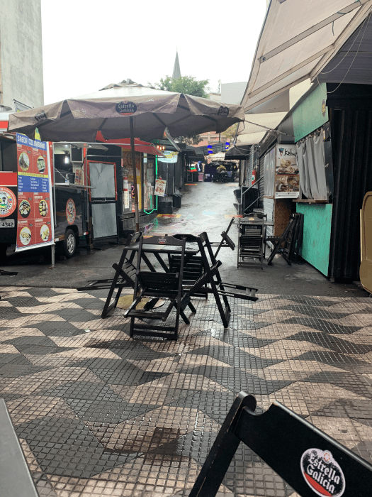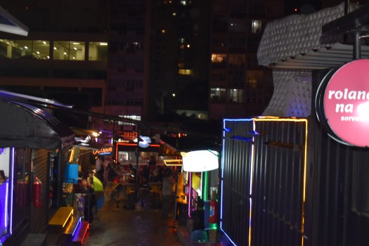 Talvez a única coisa que não mudou ao saltar dos olhos foi a quantidade de barracas disponíveis, 18 ao total, igual das outras vezes que estive, servindo pratos diversos e diferenciados, mas no horário, apenas 5 estavam funcionando, por conta do baixo movimento.