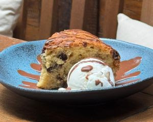 A iguaria é servida como sobremesa, acompanhada de uma bola de sorvete de creme e calda de chocolate (foto, R$ 38), e o cliente também pode levar para casa o Pandolce inteiro (R$ 140, cerca de 800 gramas), ideal para compartilhar com a família.