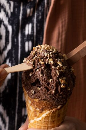 Para quem ama chocolate, mas tem restrições alimentares, uma opção saborosa é o sorvete de Chocolate Belga Duplo Zero, do JAH, Açaí, Sorvetes e Picolés, uma versão sem lactose e sem açúcar.