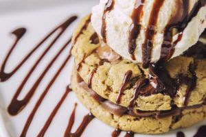 A cada mordida, o contraste de texturas se intensifica com a suavidade do sorvete de creme, finalizado por uma generosa calda de chocolate, tornando cada instante uma celebração ao cacau, por R$ 36,80.