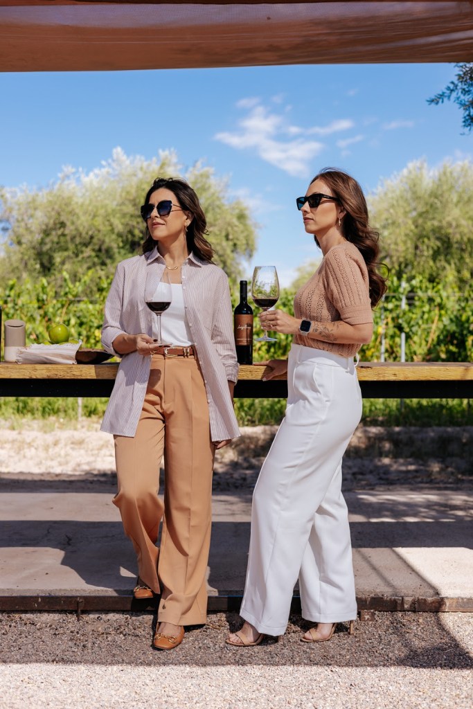 Camisa e calça de alfaiataria , blazer , saia , vestido , tricô e acessórios fazem parte da coleção e foram selecionados a partir da inspiração em vinhos como o sofisticado Insignia Malbec , fluido e expressivo no paladar; e o orgânico Luigi Bosca a Rosé is a Rosé is a Rosé , que traz um conjunto harmonioso de aromas e sabores.