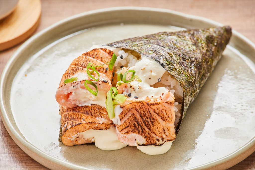 Para quem prefere uma opção de sabor mais marcante, pode escolher o Temaki de Salmão Maçaricado, que traz o defumado do salmão levemente queimado sobre uma base cremosa, por R$ 38.90.