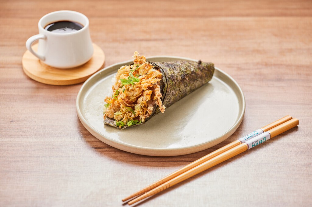 O Temaki de Camarão Crocante, reúne a base clássica, com alga e arroz, com a explosão de aromas do camarão empanado e pode ser encontrado por R$ 38,90.