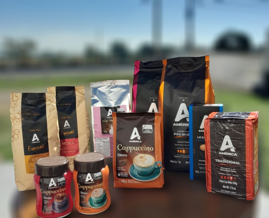 Café América Extraforte – Com um ponto de torra mais acentuado e escuro, reúne grãos selecionados dando origem a uma bebida marcante, indicada para quem busca mais energia para começar o dia. Disponível moído em embalagens descartáveis e sachês de 500g.