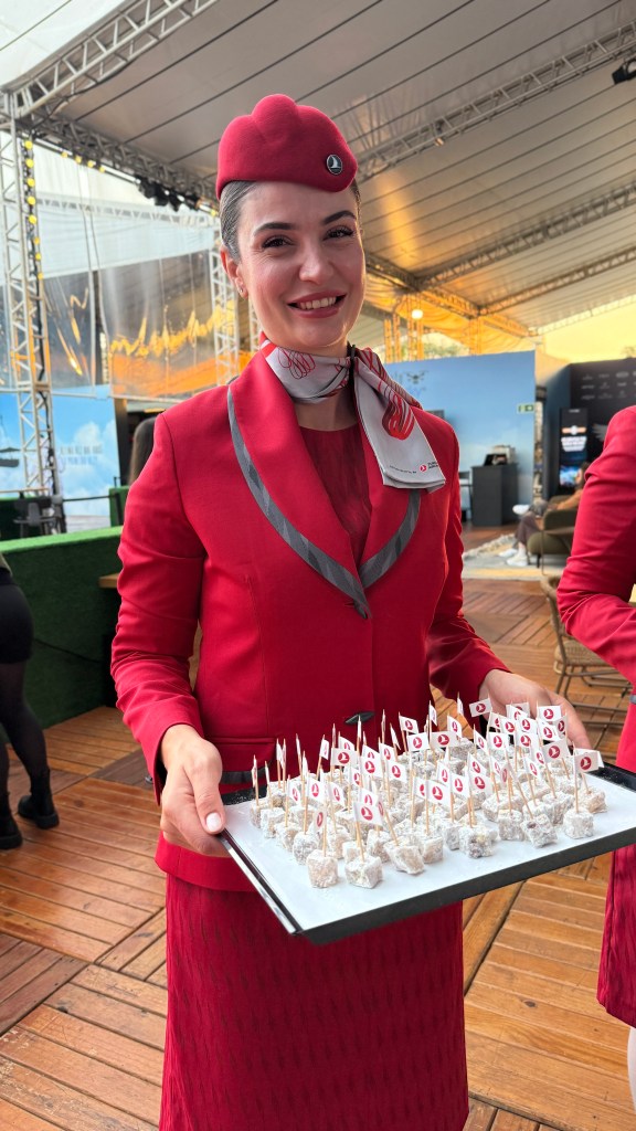 O menu, elaborado pelos chefs da Turkish Airlines, incluía mezzes turcos típicos, salada de polvo ao estilo mediterrâneo e uma seleção tradicional de sobremesas turcas. A proposta foi destacar o foco da companhia na excelência culinária e no cuidado com o cliente.