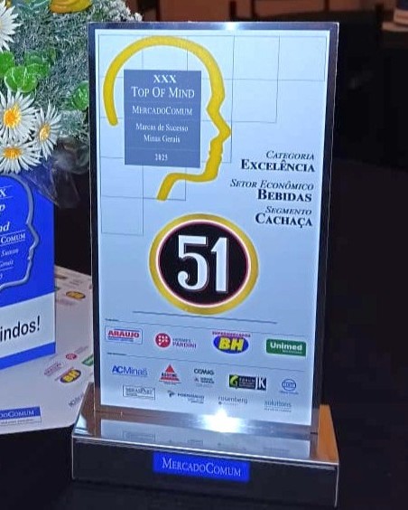 A Cachaça 51 foi eleita como uma das mais lembradas pelos mineiros na 30ª edição do Prêmio Top of Mind – MercadoComum – Marcas de Sucesso – Minas Gerais.