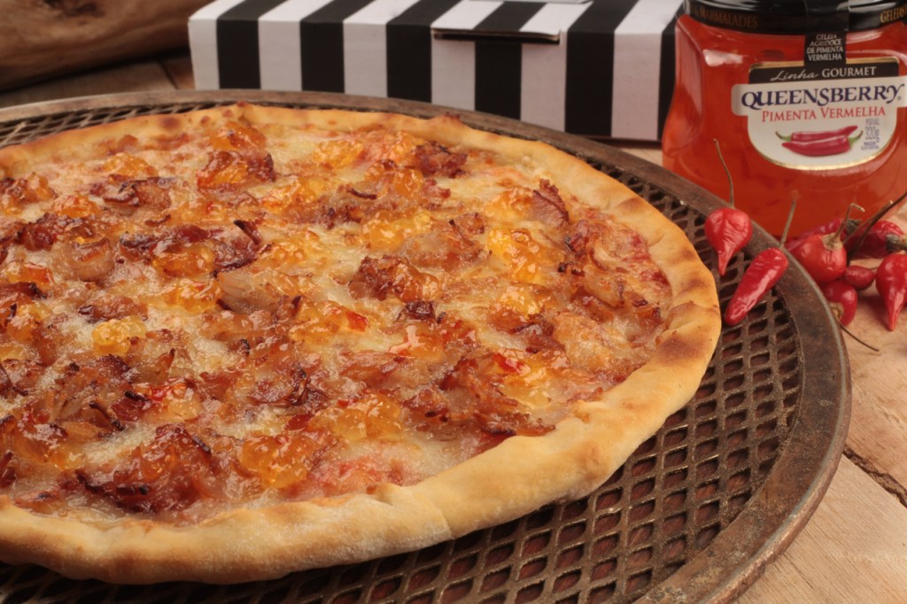 Preparada com massa leve, a pizza da Di Blasi Pizzas, rede de pizzarias referência no mercado de delivery, traz a união do sabor defumado do bacon crocante à doçura levemente picante da geleia de pimenta.