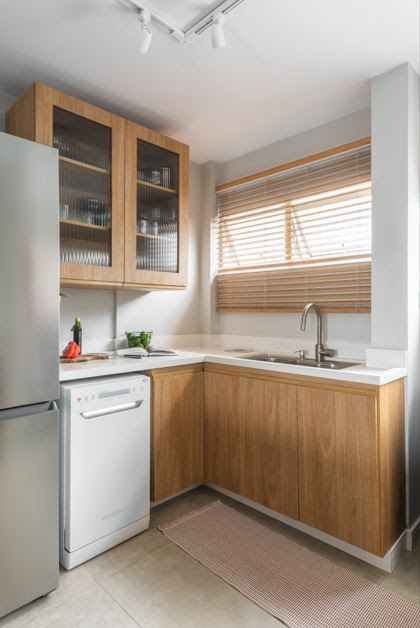 “É bem interessante um elemento dimerizável, que permite controlar a intensidade de luz. Com temperatura de 3000 Kelvin e índice de reprodução de cor acima de 90%, proporciona conforto total na hora de preparar alimentos “, destaca o arquiteto.