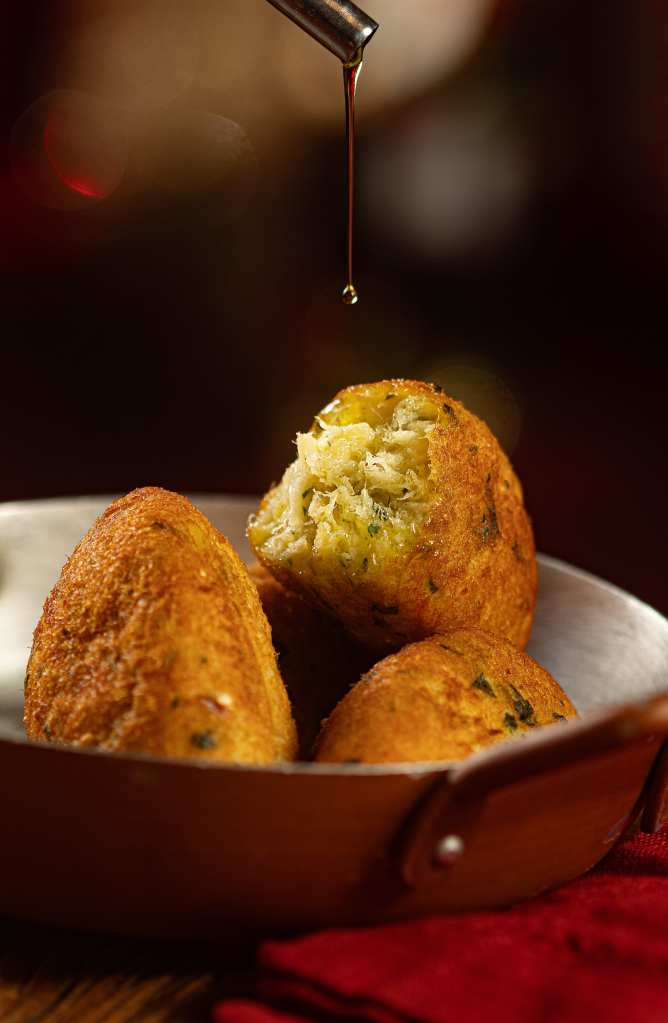 Coxinha à Portuguesa (recheada com bacalhau, azeitonas e queijo