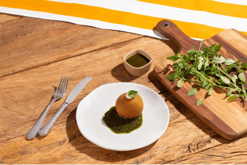 – Arancini Caprese: preparado com risoto de legumes e tomate seco, acompanhado de molho pesto de manjericão. Uma opção saborosa que também atende ao público vegetariano.