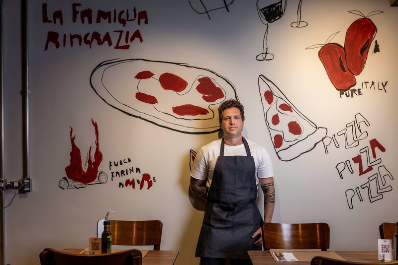 Cada chef irá preparar pizzas exclusivas, o chef Pierluigi Russo apresenta a pizza Focaccia Italioca, feita com massa de focaccia e que leva stracciatella, camarão, couve crispy, tomatinhos e zest de limão siciliano.