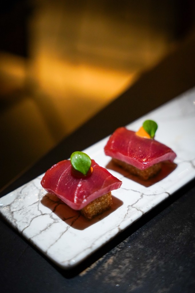 O menu que dá sabor ao conceito possui pratos como Ceviche de Vieiras Japonesas com Dashi, Tacos de Caranguejo de casca mole com maionese de gochujang e Nigiri de Atum Bluefin, com arroz crocante, maionese picante e mogno.