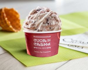 Produzido com iogurte fresco regado com pedaços de amarena, espécie italiana de cereja selvagem com polpa suculenta, o sabor inconfundível do gelato Yogurt all’Amarena é original da Cuor di Crema.